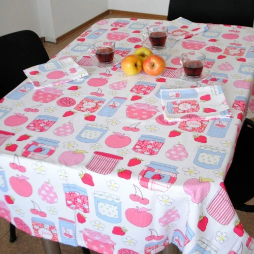 фактуру ткани. Скатерть отлично подойдет для деревянного стола